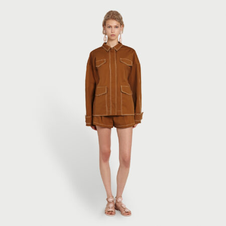 Fitted camel cotton jacket