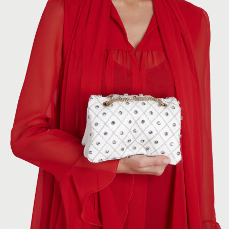 Borsa a secchiello piccola in pelle bordeaux intrecciata