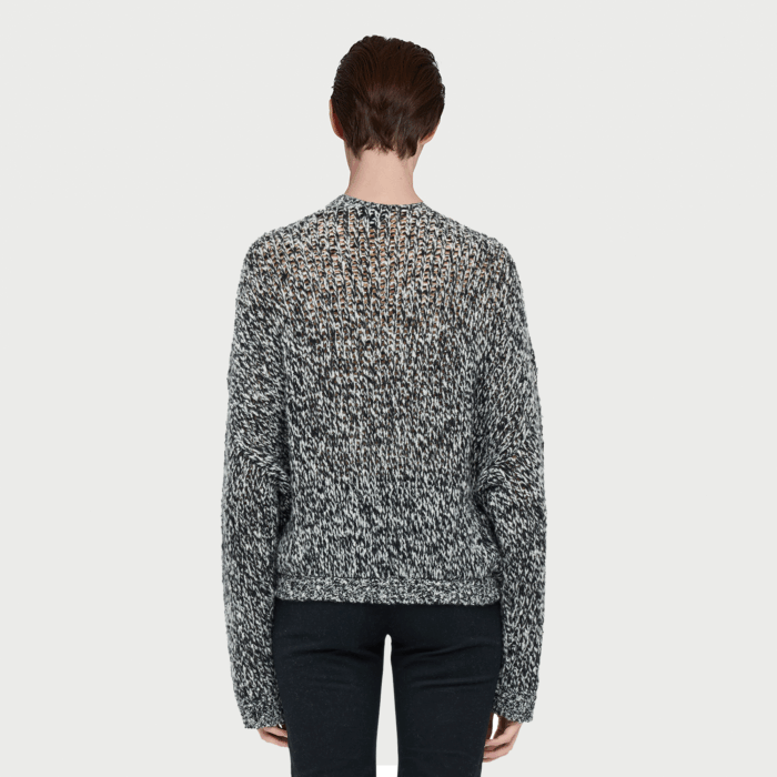 Pullover grigio in lana e macramé nero